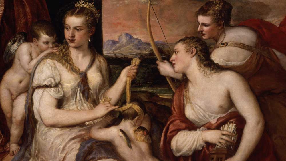 Il dipinto, datato 1565, mostra Venere nell’atto di bendare gli occhi di Cupido, mentre un amorino si posa sulla sua spalla e due ancelle portano arco e faretra. Eseguito quando Tiziano aveva quasi ottant’anni, rappresenta la fase più intensa e malinconica della sua maturità artistica. La direttrice della Galleria Borghese, Francesca Cappelletti, ha evidenziato come l’opera sia un esempio della missione di disseminazione del museo romano, nata dal lascito di Scipione Borghese: ricerca, dialogo con il pubblico e generosità verso la collettività.
