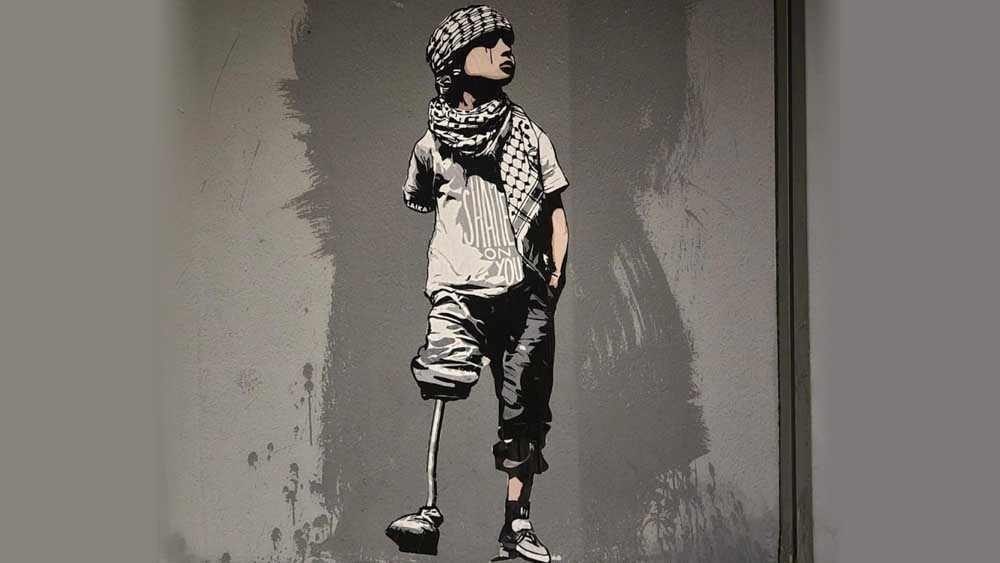 Nel pieno della quotidianità romana, dove i bambini entrano ed escono da scuola con zaini colorati e passi leggeri, è comparsa un’immagine che spezza il ritmo abituale e costringe a fermarsi. Proprio davanti a una scuola elementare in via Bobbio, una nuova opera di Laika richiama l’attenzione su un tema che riguarda tutti: l’infanzia negata dalle guerre. L’artista ha scelto un bambino palestinese mutilato, due lacrime nere e un messaggio diretto, “Shame on you”, un’accusa universale rivolta a chi chiude gli occhi o diventa complice delle tragedie umane.
